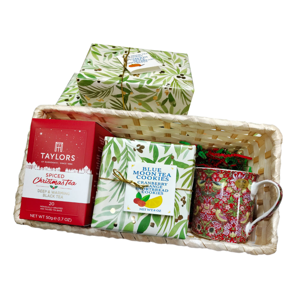 Christmas Tea and Cookies Gift Basket with Strawberry Thief Mug